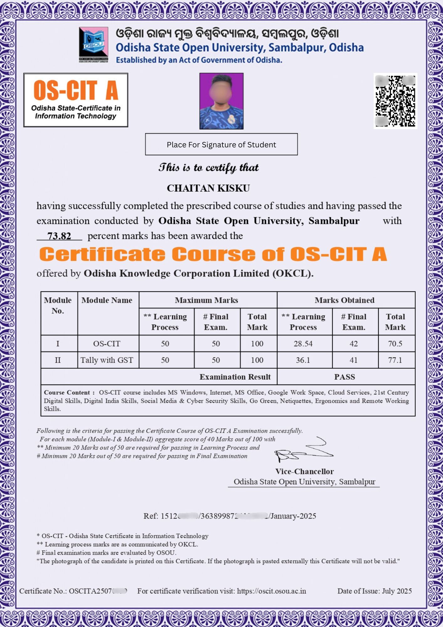 Odisha State Certificate in Information Technology