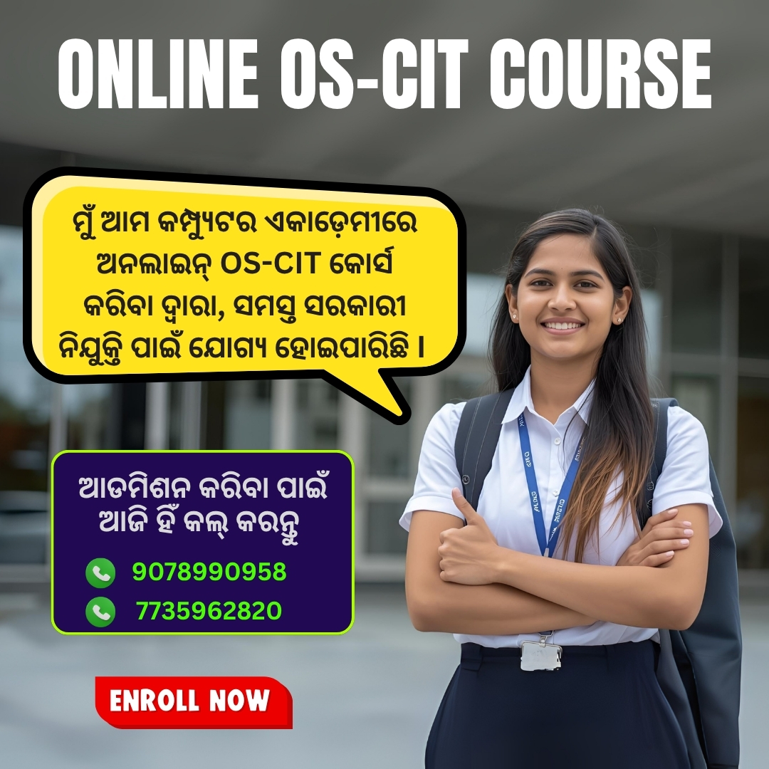 OS-CIT (Odisha State Certificate in Information Technology) is a state-recognized computer course offered by Odisha Knowledge Corporation Limited (OKCL). The final examination and certification are conducted by the Odisha State Open University (OSOU), Sambalpur.
